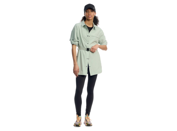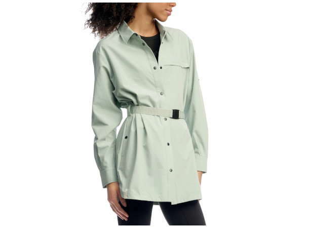 En overskjorte i lett stoff med ventilasjon på ryggen. Trykknapper i plast på mansjettene, langs stolpen foran og på sidelommene. Armene kan brettes opp og festes med en knapp. Skjorten har hemper i sidene for et elastisk belte med hengeløkke. Den kan pakkes inn i brystlommen og hektes til beltet. En perfekt skjorte for både korte og lange turer.