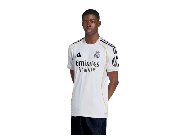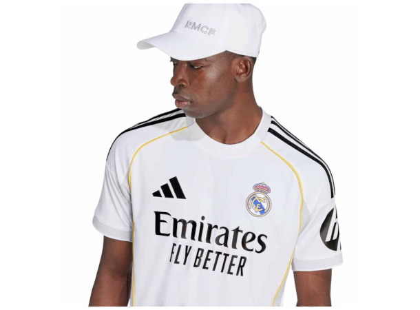 Adidas Real Madrid Hjemmedrakt for 2025/26-sesongen er laget av et teknisk AEROREADY-materiale som tar svetten bort fra kroppen, samtidig som det holder deg tørr og komfortabel