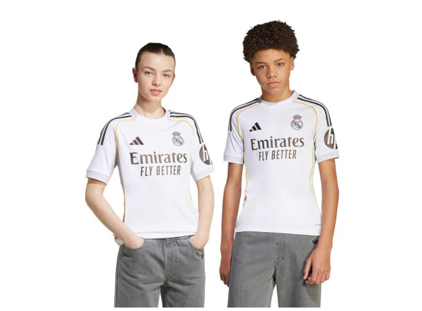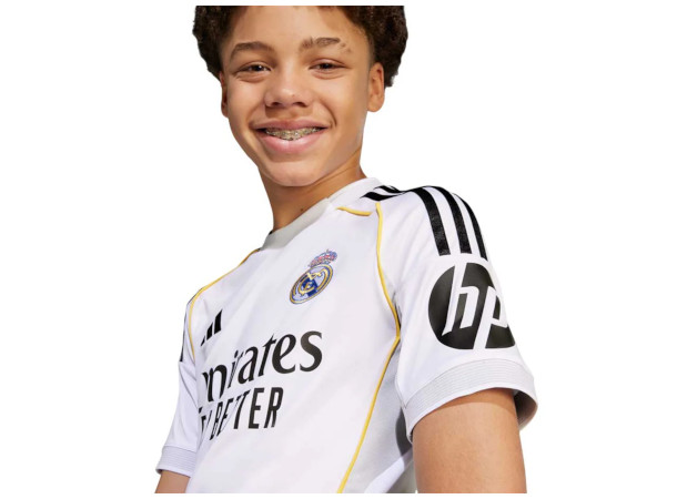 Adidas Real Madrid Hjemmedrakt til barn for 2025/26-sesongen er laget av et teknisk AEROREADY-materiale som tar svetten bort fra kroppen, samtidig som det holder deg tørr og komfortabel.