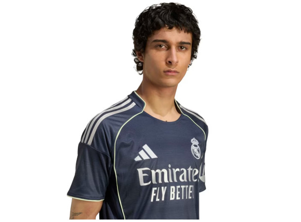 Adidas Real Madrid Bortedrakt for 2025/26-sesongen er laget av et teknisk AEROREADY-materiale som tar svetten bort fra kroppen, samtidig som det holder deg tørr og komfortabel.
