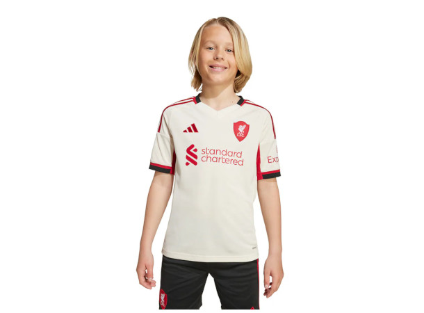 Adidas Liverpool FC Bortedrakt til barn for 2025/26-sesongen er laget med AEROREADY-materiale som tar vekk svetten fra kroppen, og holder deg tørr og komfortabel under aktivitet og når du heier på laget ditt.