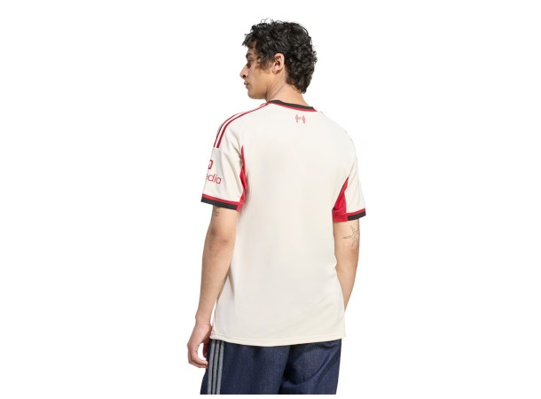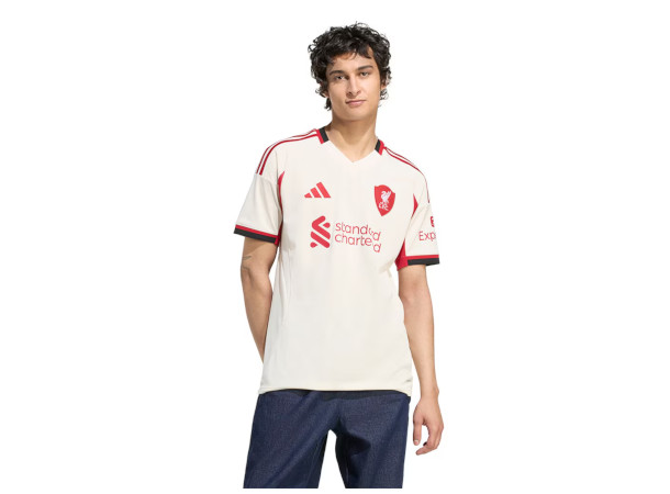 Adidas Liverpool FC Bortedrakt for 2025/26-sesongen er laget med AEROREADY-materiale som tar vekk svetten fra kroppen, og holder deg tørr og komfortabel under aktivitet og når du heier på laget ditt.