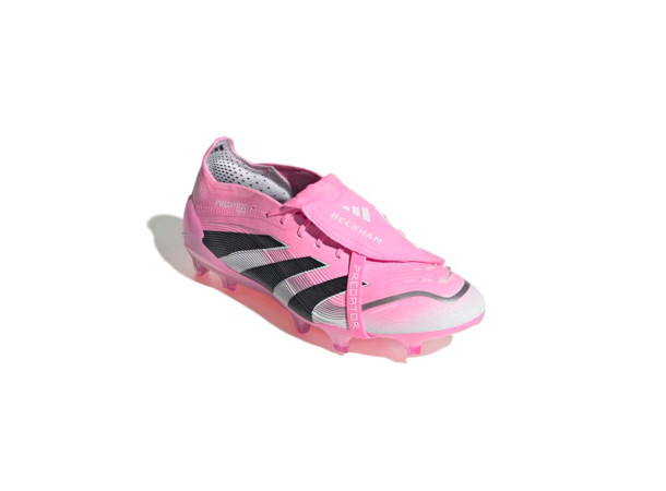 Predator Elite Fold-over Tounge (FT) er toppmodellen fra Predator-linjen til adidas. En hyllest til David Beckham, hans spillestil og kjærlighet for rosa fotballsko. FG-knotter for spill på naturgressbaner.