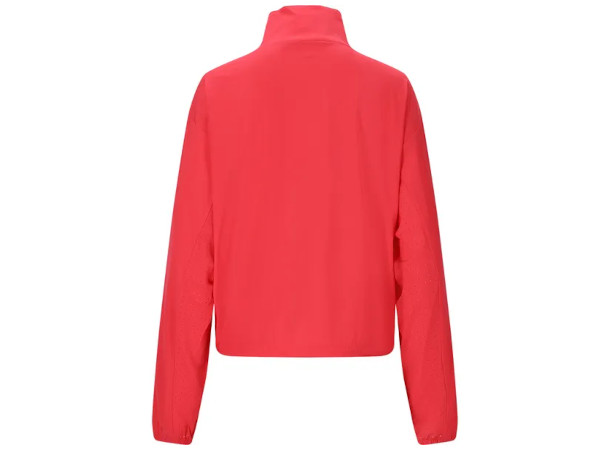 Med sitt korte snitt, praktiske halvglidelåslukking og sporty ståkrage, tilbyr den maksimal bevegelsesfrihet og en lett følelse. Ventilerte partier og det pustende materialet sikrer et behagelig kroppsklima – selv under mer intense økter.