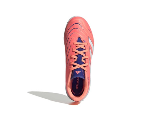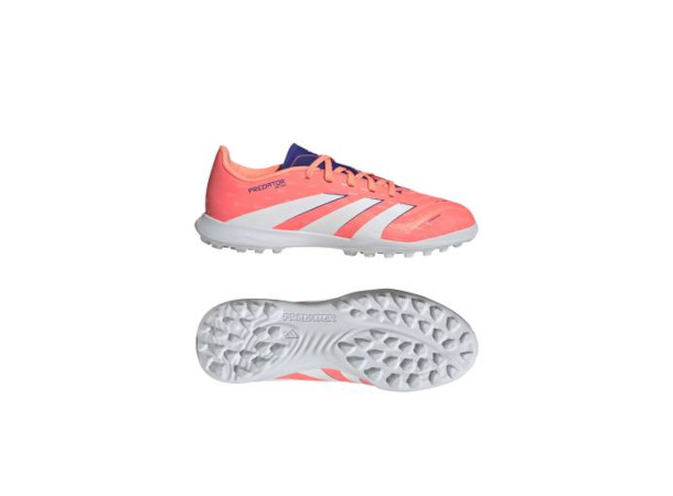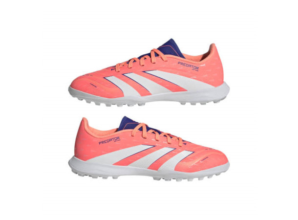 Oppdag forskjellen mellom å sikte på å score og å vite at du vil gjøre det med adidas Predator-sko som er laget for mål. Disse junior League-skoene har en Hybridfeel-overdel som har en heldekkende 3D-tekstur og grepsrike Strikescale-finner som hjelper deg med å manipulere ballen under skudd. En røff gummisåle holder deg stabil på kunstgressbaner
