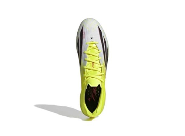 F50 Elite Firm Ground fotballskoene er laget for de som lever for fart på banen. Med en fornyet grafikk på overdelen og presisjonsteknikk tilbyr de den rette blandingen av enestående stil og ytelse. Fibertouch-overdelen har en konstruert materialpakke som gir støtte og myk følelse med strategisk plasserte 3D-linjer. Sprintweb gir HD 3D-tekstur for forbedret ballkontakt, spesielt ved dribling i høye hastigheter. Compression Fit Tunnel Tongue tilpasser seg foten din, med TPU-forsterkninger strategisk plassert for forbedret passform og låsing. Sprintframe 360-yttersålen, med sin anatomisk utformede kjernestruktur for avstivning av mellomfoten og en kombinasjon av bladformede og halvkoniske knotter, gir akselerasjon og fart i alle retninger. De trykte adidas 3-Stripes og F50-logoen setter prikken over i-en til dette paret. Disse fotballskoene blander funksjonalitet og stil og er et smart tillegg til utstyret ditt.