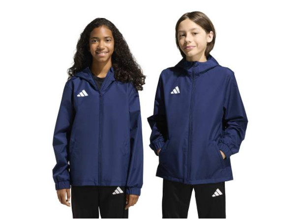 Entrada26 All Weather jakken er laget for å holde tritt med unge fotballspillere, og håndterer tempoet i kampen, uansett vær. Den er en del av adidas basislagsklær for fotballspillere på inngangsnivå, og leverer ytelse uten problemer. Laget av slitesterkt, enkeltvevd stoff, har den en hel glidelås for enkel av og påkledning, en standard passform for ubegrenset bevegelsesfrihet og allsidighet i hverdagen for skole, sport og helgebruk. Den er ferdig med et trykt Badge of Sport for umiddelbar adidas-stil, og er laget for skiftende vær og aktive dager – og holder barna komfortable fra avspark til avslapning.