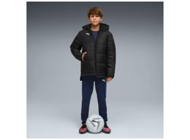 Puma Teamadditions Bench Jakke til barn er lang og holder deg varm på kalde dager. Den passer perfekt til utendørstrening, oppvarming eller til når du sitter på benken.