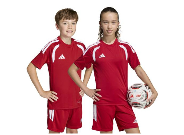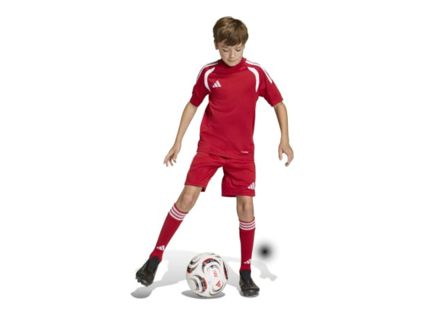 Vi introduserer Tiro26 League-drakten, der arv møter innovasjon for unge fotballentusiaster. Denne drakten er designet for å inspirere og gir et raskt og moderne utseende til en tilgjengelig pris. Kjølig. Tørr. Klar. Climacool transporterer bort svette for en kjølig, tørr og distraksjonsfri ytelse. Denne teknologien hjelper barnet ditt med å holde seg kjølig og tørt under intense kamper, slik at de kan fokusere på prestasjonene sine. Nettinginnleggene fremkaller fart og bevegelse, og omslutter kroppen for å skape en omsluttet silhuett som taler til spillets dynamiske natur. Med et klassisk fotballutseende viser drakten frem den ikoniske broderte adidas-logoen og 3-Stripes, som legemliggjør sportens ånd. Enten det er kampdag eller trening, er den designet for å støtte hver bevegelse, noe som gjør den til et must-have-plagg for håpefulle fotballstjerner.
