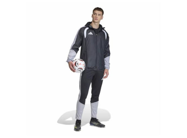 Denne vindjakken er laget for fotballspillere som krever både ytelse og stil. Den kombinerer en moderne, atletisk silhuett med praktiske funksjoner som gjør den perfekt for kjølige treningsøkter eller uforutsigbart vær. Den lette ripstop-konstruksjonen gir slitestyrke og komfort, mens den pakkbare hetten gjør jakken enkel å ta med og bruke når været skifter. Justerbare snorer i hetten og livet gir en tilpasset passform, og elastiske mansjetter holder vinden ute. Med ikoniske adidas-detaljer og en klassisk look er dette en jakke som passer både på og utenfor banen.