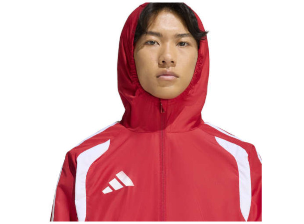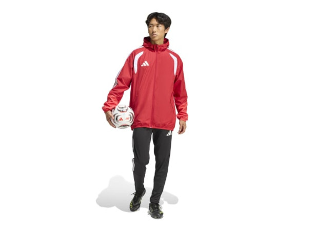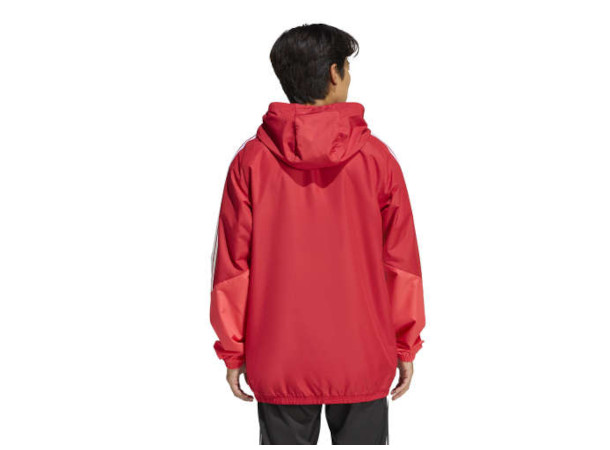Denne vindjakken er laget for fotballspillere som krever både ytelse og stil. Den kombinerer en moderne, atletisk silhuett med praktiske funksjoner som gjør den perfekt for kjølige treningsøkter eller uforutsigbart vær. Den lette ripstop-konstruksjonen gir slitestyrke og komfort, mens den pakkbare hetten gjør jakken enkel å ta med og bruke når været skifter. Justerbare snorer i hetten og livet gir en tilpasset passform, og elastiske mansjetter holder vinden ute. Med ikoniske adidas-detaljer og en klassisk look er dette en jakke som passer både på og utenfor banen.