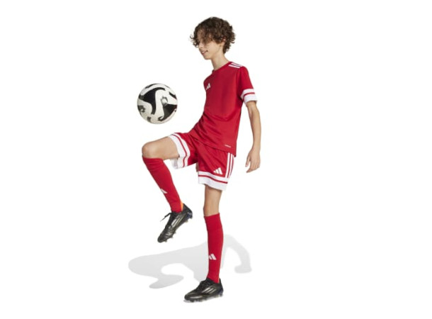 Se ut som og spill som et lag i denne adidas-shortsen for juniorer, laget for ytelse og stil. Strammesnoren i livet gir justerbar passform, og fuktkontrollerende AEROREADY holder deg fokusert, og holder deg komfortabel gjennom taklinger og pilende treff. Bruk dem sammen med Squadra 25-trøyen, for en profesjonell stil som matcher fotballen din.Dette produktet lages med 100 % resirkulerte materialer. Ved å gjenbruke materialer som allerede er produsert, bidrar vi til å redusere avfall og avhengigheten vår av begrensede ressurser, og reduserer fotavtrykket til produktene vi lager.