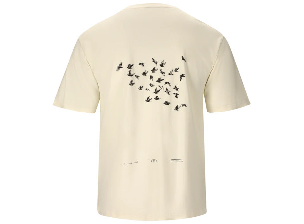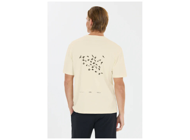 Den avslappede passformen med dropped skuldre skaper et moderne og uanstrengt utseende, noe som gjør denne T-skjorten ideell for både hverdagsbruk og fritidsaktiviteter. Det kraftige materialet understreker den høye komforten og gjør modellen til et pålitelig valg i garderoben – både alene og som lag under en hettegenser eller jakke.