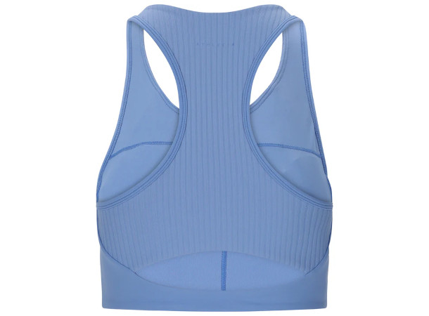 Sports-BHen er laget i et mykt og svettetransporterende materiale som hjelper deg med å holde deg tørr og komfortabel. De avtagbare skålene gjør det mulig å tilpasse støtten, mens ribbdetaljene og det aerodynamiske designet gir et moderne og funksjonelt uttrykk.