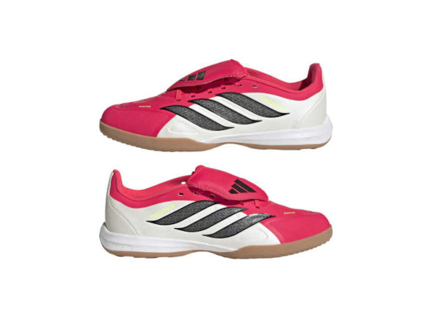 Møt Predator League Fold-Over Tongue Indoor-fotballskoene. Disse skoene er designet for unge spillere og har en overbrettet pløse som gir et klassisk preg og en tettsittende passform for energiske fotballøkter.