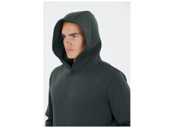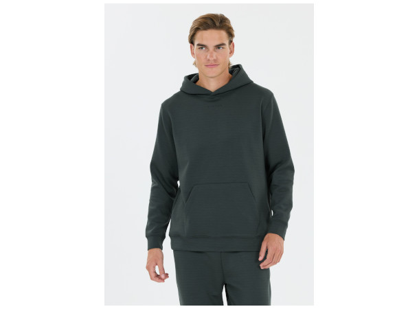Trøya har en fast hette med justerbare snorer og en overlappende krage, som gir et avslappet utseende og ekstra beskyttelse mot kulde. Kengurulommen på magen gir plass til oppbevaring eller oppvarming av hendene, og de elastiske ribbkantene i bunnen og ved ermene sikrer en god passform.