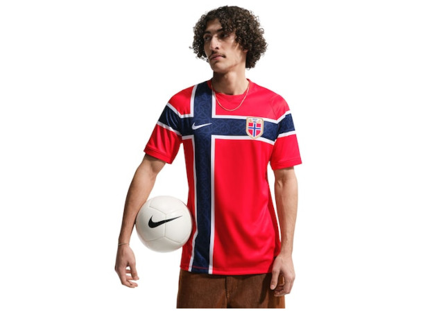 Norges nye hjemmedrakt kommer naturligvis i rødt, hvitt og blått og integrerer det norske flagget i et ekte «pakk deg inn i flagget»-øyeblikk.